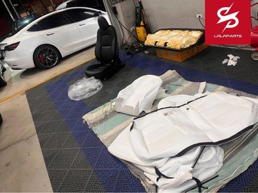 製作工法:《椅皮、海綿 1:1 替換》,並非整張椅子直接更換。前雙座內建通風椅系統,採用原車椅子件進行 NAPPA 椅皮、海綿修改:《椅皮、海綿 1:1 替換》,將您原車的椅皮拆卸,完整替換成客製化椅皮海綿,施工工法也較為費時,需藉由專業內裝領域人員完成,效果與包覆感如同原廠,且完全不影響安全氣囊作動,以保障每一位車主行車安全。