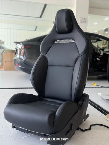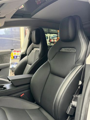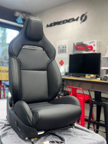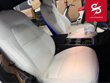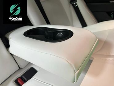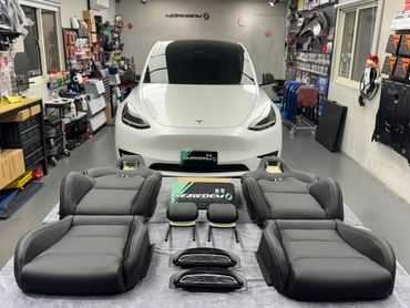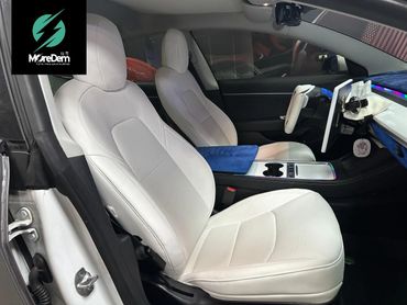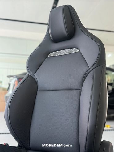製作工法:《椅皮、海綿 1:1 替換》。左右側腿靠更具包覆性。前雙座內建通風椅系統,採用原車椅子件進行椅皮、海綿修改:《椅皮、海綿 1:1 替換》,將您原車的椅皮拆卸,完整替換成客製化椅皮海綿,施工工法需藉由專業內裝領域人員完成,效果與包覆感如同原廠,且完全不影響安全氣囊作動,以保障每一位車主行車安全。