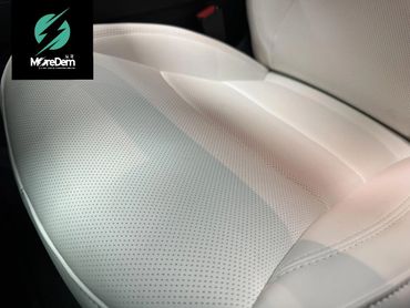 製作工法:《椅皮 1:1 替換》,將您原車的椅皮拆卸,完整替換成客製化椅皮,施工工法也較為費時,需藉由專業內裝領域人員完成,效果與包覆感如同原廠,且完全不影響安全氣囊作動,以保障每一位車主行車安全。您可選擇透氣孔洞洞椅效果,運用於通風座椅上。