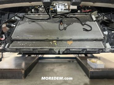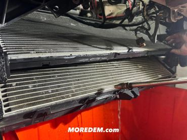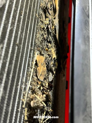 一般的車子設計的冷排是「直立擺放」,而特斯拉的冷排則是採用斜式設計,這種設計只會讓異物「只進不出」,導致斜面的冷排上會堆積著不少樹葉與異物,然而進氣口像是大型吸塵器,如果沒有裝擋蟲網作為第一層防護,吸進的異物會蠻豐富的。
