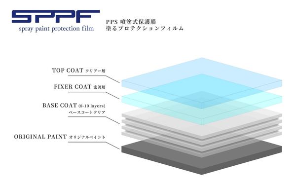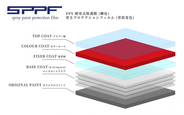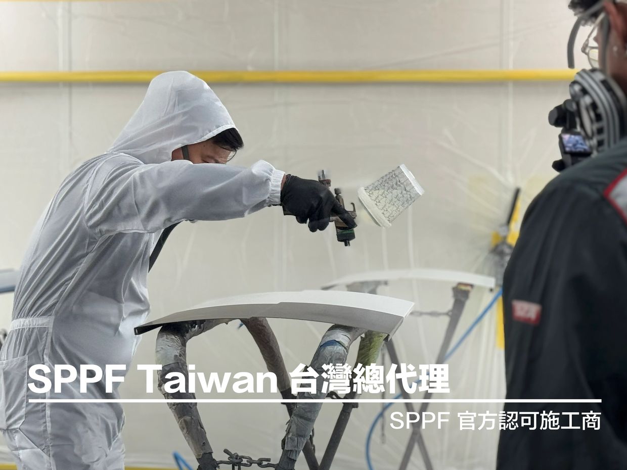 SPPF 是一種特殊的「透明液態保護塗料」。施工時,師傅會用 專業噴槍 經過多道功法噴塗把它均勻噴在車漆表面。